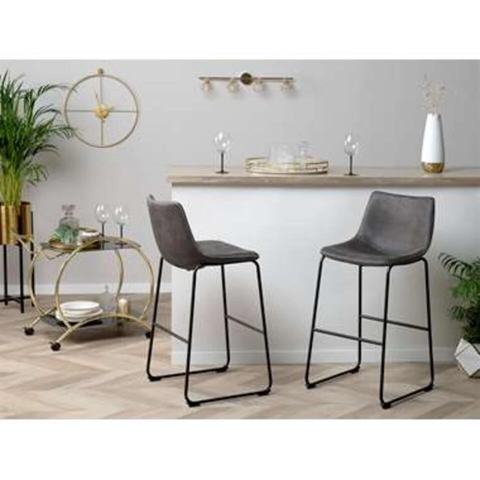 Comfortabele barstoelen in vintage look. Ontdek onze barstoelen in retro-ontwerp. Het zitvlak van de stoel is bekleed met een zachte, duurzame stof en biedt dankzij de gebogen vorm comfort. De trapeziumvormige framepoten geven de stoelen een vleugje moderniteit en maken ze de perfecte aanvulling op veel woonruimtes.