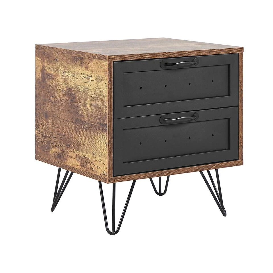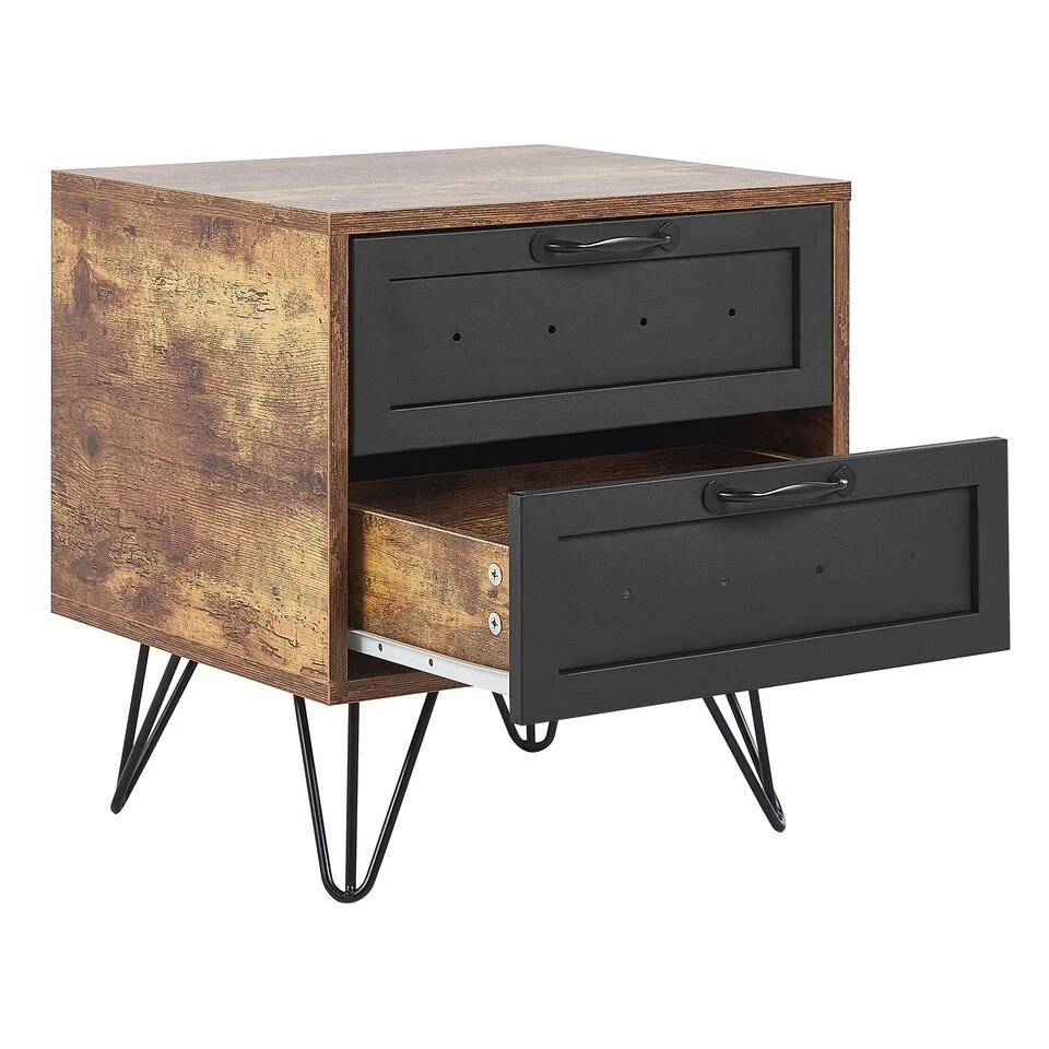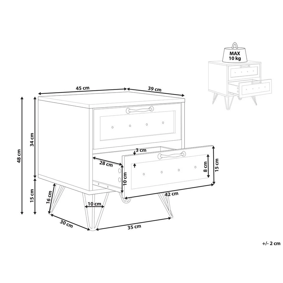 Handig Nachtkastje met Lades. Dit praktische nachtkastje is een essentieel onderdeel van het bedmeubilair en zorgt voor extra opbergruimte. Het is een modern ontwerp met donkere haakpoten die een industrieel tintje aan je interieur geven. Het nachtkastje heeft twee ruime laden.