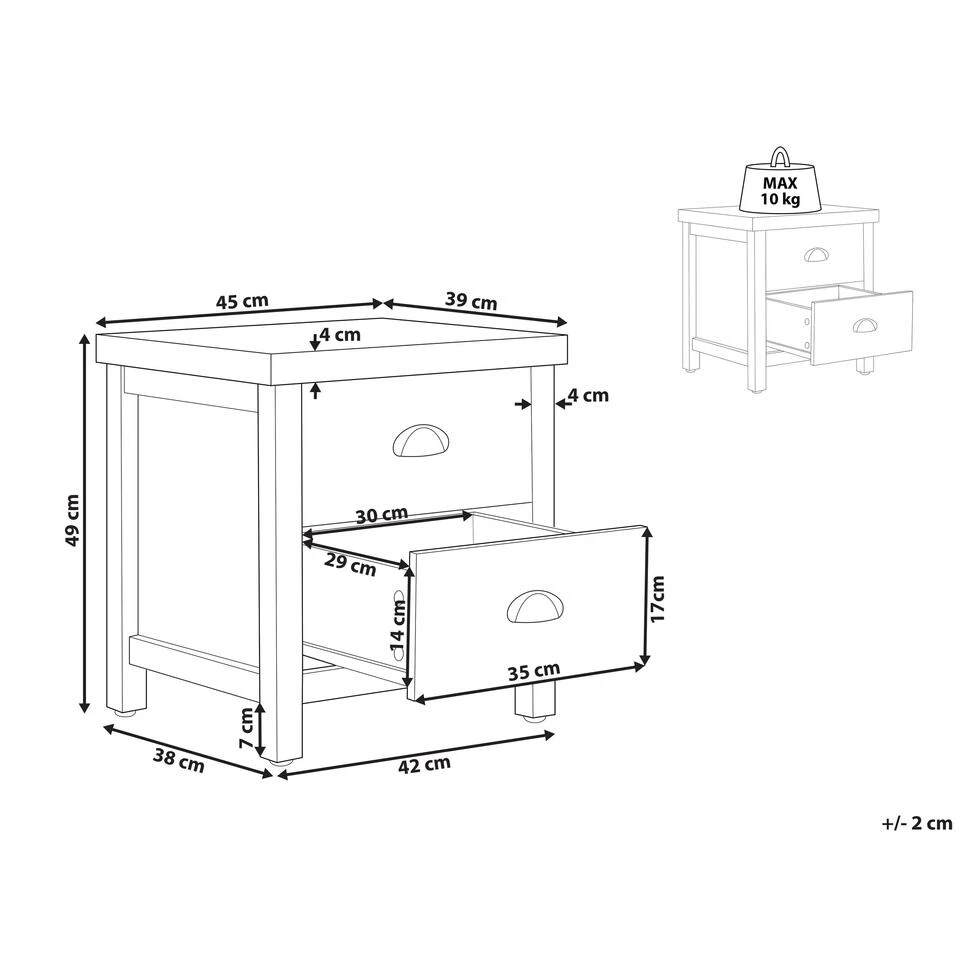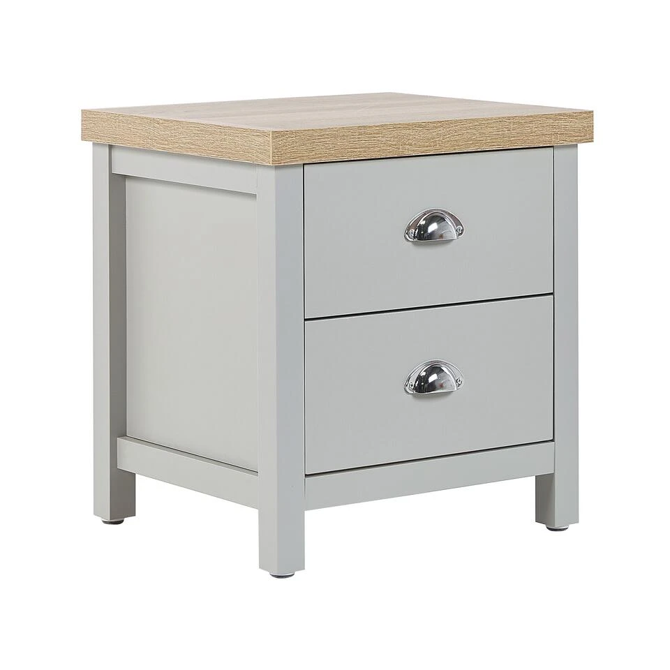 Modern nachtkastje met opbergruimte. Dit stijlvolle nachtkastje is een nuttig meubelstuk waardoor je een klein nachtlampje en diverse benodigdheden in je slaapkamer binnen handbereik kunt hebben. De ruime laden bieden extra ruimte voor boeken en opladers voor mobiele telefoons. Dankzij zijn afwerking en tint past het uitstekend in zowel Scandinavische als traditionele interieurs.