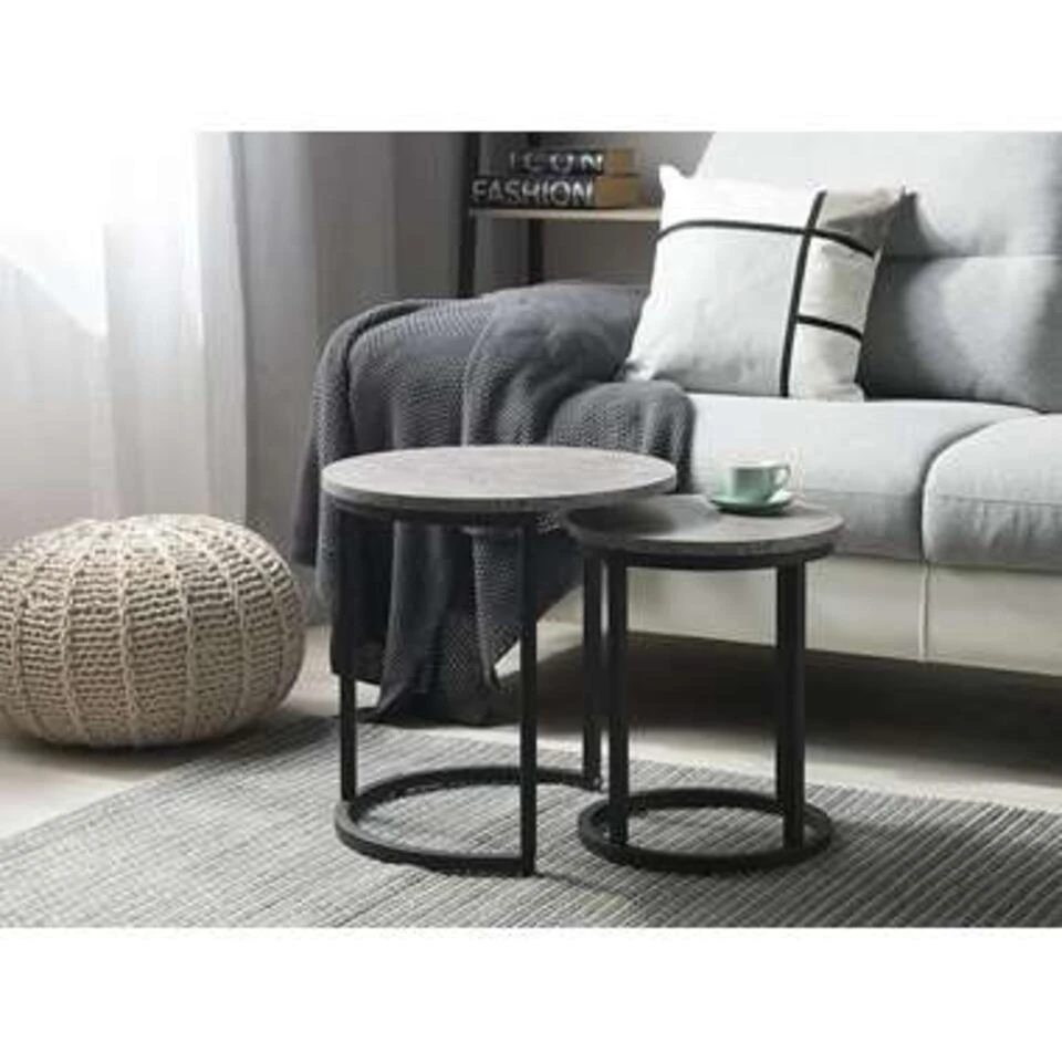 Praktische set van 2 bijzettafels in een moderne look. Een praktische verrijking voor elk huis. Dankzij deze twee ronde bijzettafels heb je meer ruimte voor jouw decoratieve items, bloemen of andere kleine dingen. Of het nu gaat om een kleine salontafel in de woonkamer of als opbergruimte in de entree, individueel of samen – deze set vervult zijn functie overal. De set fascineert ook door het moderne uiterlijk.
