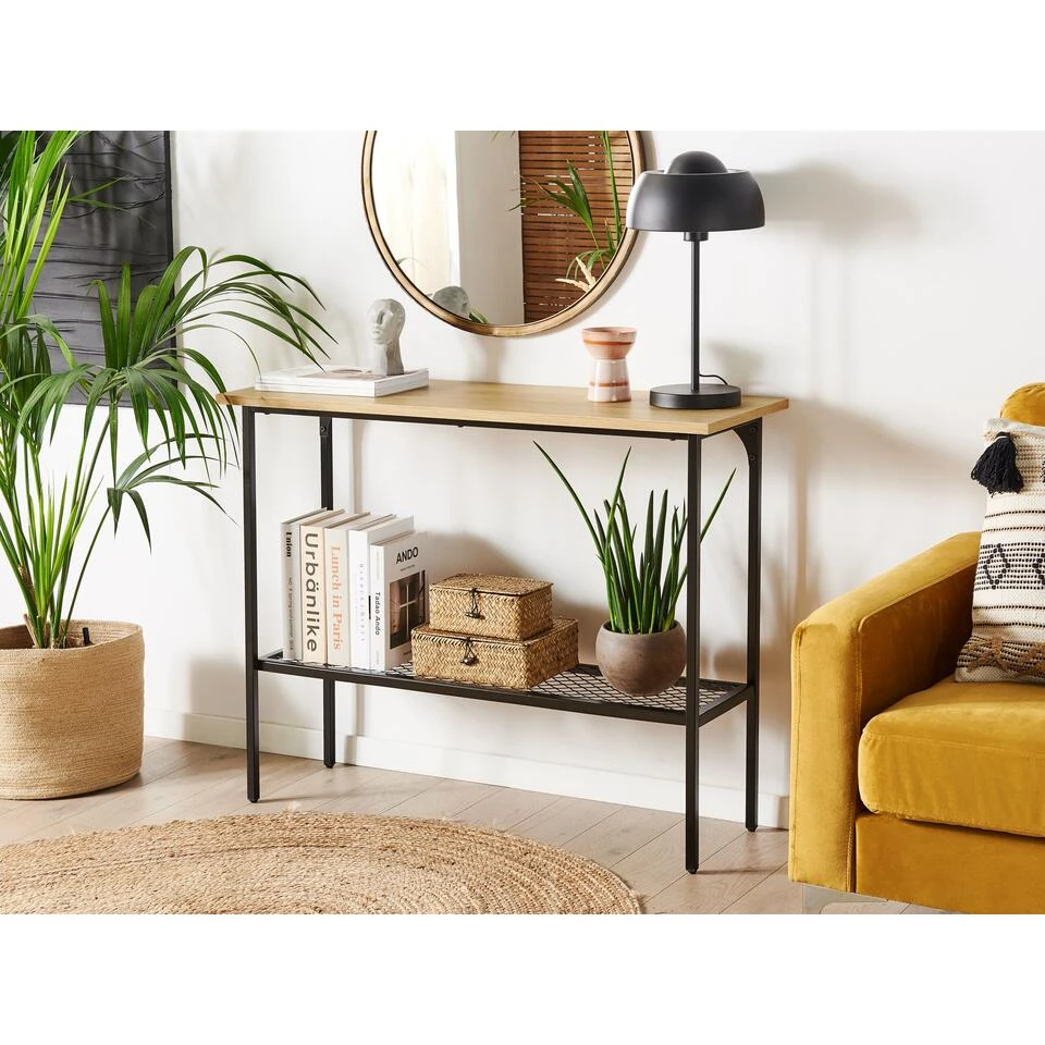 Scandinavische, smalle gangtafel met extra opbergruimte. Geef je hal een mooie uitstraling met deze prachtige Scandinavische console. Perfect om sleutels of andere losse voorwerpen binnen handbereik te hebben wanneer je in en uit je huis loopt. Op een extra plank kun je schoenen, tassen of aktetassen op een handige plaats opbergen.