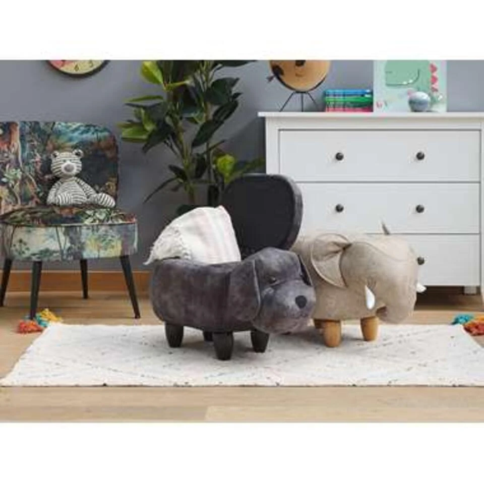 Beliani Dierenhocker DOGGY – Grijs Fluweel
