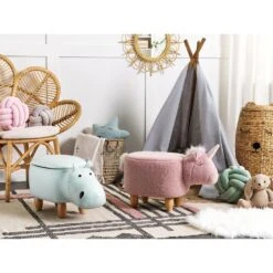 Hocker in vorm van nijlpaard. Schattig en praktisch. Deze leuke dierenhocker in de vorm van een nijlpaard is de perfecte aanvulling voor de inrichting van elke kinderkamer. Maar hij is natuurlijk ook heel leuk voor de grote kinderen onder ons. De poef is uitgerust met opbergruimte voor bijvoorbeeld klein speelgoed.