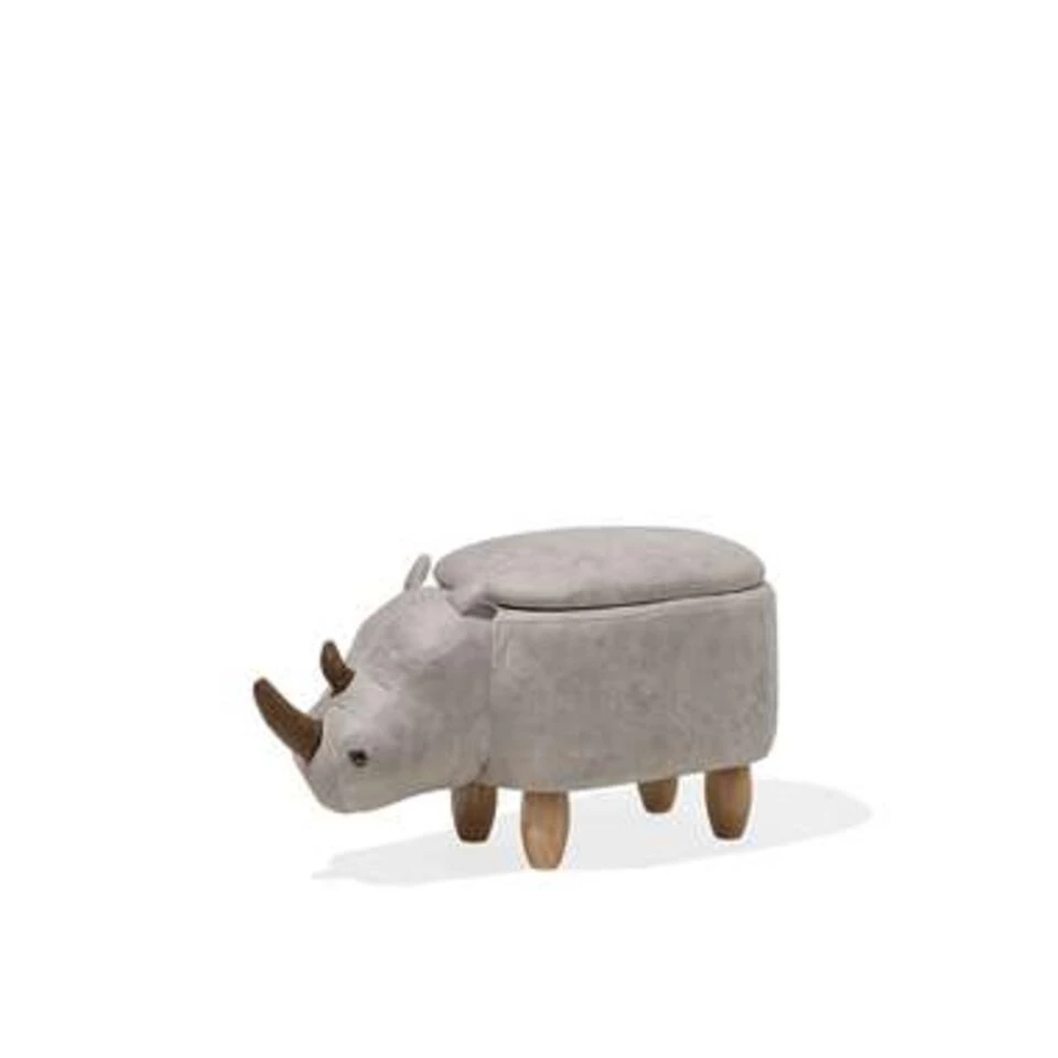 Hocker in vorm van neushoorn. Deze leuke dierenhocker in de vorm van een neushoorn is de perfecte aanvulling voor de inrichting van elke kinderkamer. De bekleding van kunstleer en de houten pootjes kunnen perfect gecombineerd worden met een moderne inrichting. De hocker is uitgerust met een opbergruimte voor bijvoorbeeld klein speelgoed. En natuurlijk is ‘ie ook heel leuk voor de grotere kinderen onder ons.