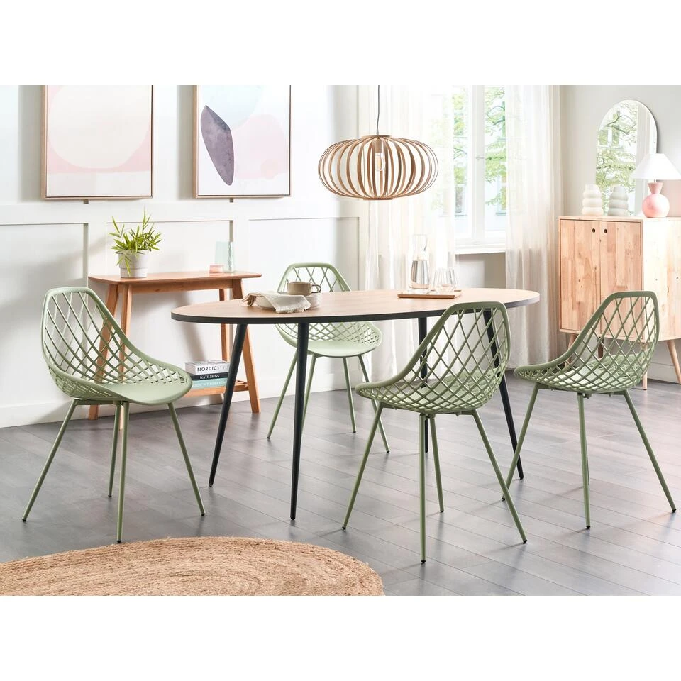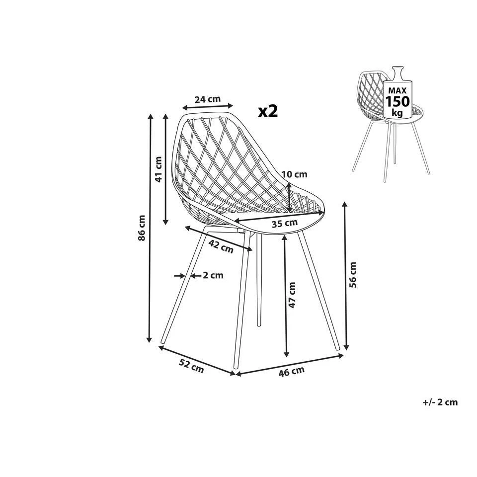 2-delige Scandinavische keukenstoelenset. Creëer een comfortabele eethoek dankzij deze prachtige stoelen in eigentijds design. De stoelen hebben een klassieke netvormige rugleuning en gladde zittingen en zijn gemaakt van onderhoudsvriendelijk synthetisch materiaal. De metalen poten garanderen stabiliteit en geven het geheel een minimalistische flair. Plaats ze met een bijpassende tafel en geniet van dineren in alle comfort.