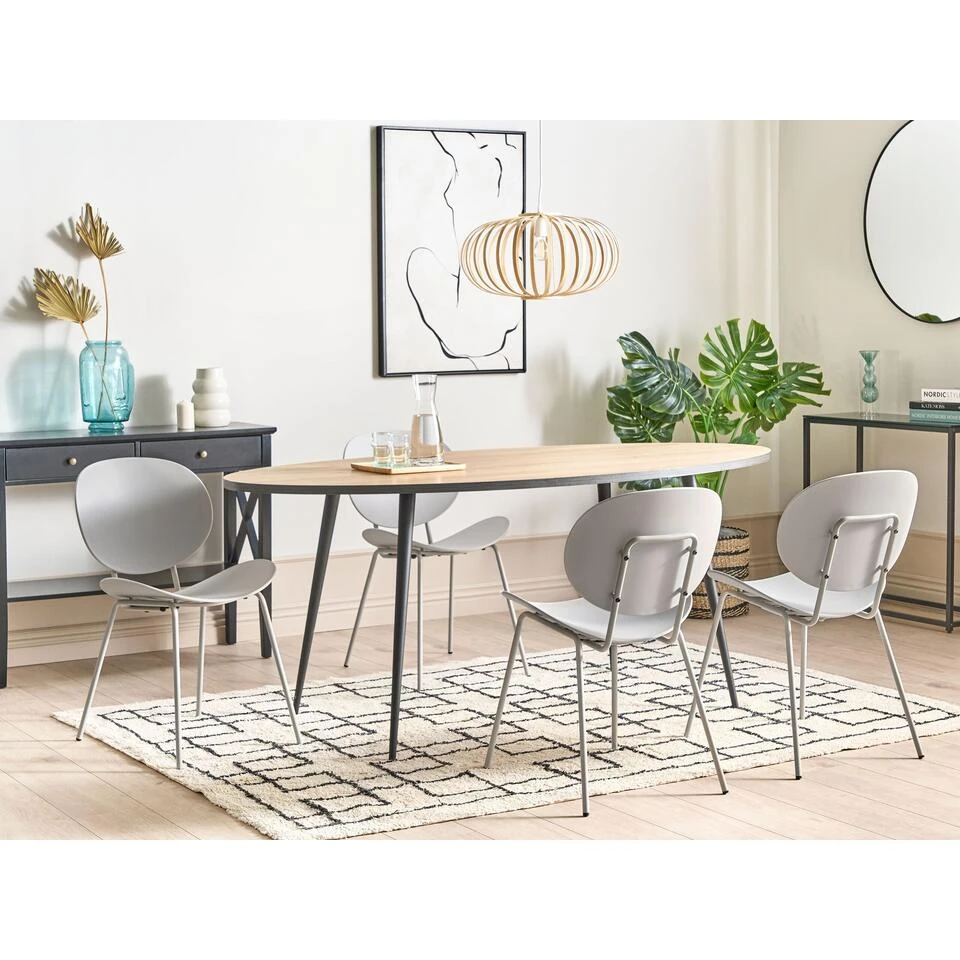 Moderne accentstoelen. Maak van je eetkamer een functionele en stijlvolle ruimte door deze set stoelen toe te voegen. Dankzij het neutrale kleurenschema en de veelzijdige uitstraling zijn ze de perfecte aanvulling op ruimtes van elke stijl, van Scandinavisch tot industrieel. Ze zijn gemaakt van synthetisch materiaal met metalen poten, waardoor ze gemakkelijk te onderhouden, stabiel en comfortabel zijn. Samen met een bijpassende tafel maken ze van de eetkamer, het middelpunt van je huis.