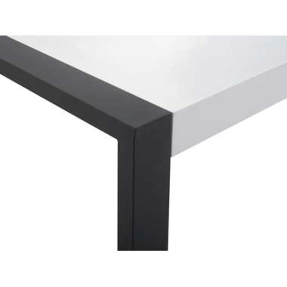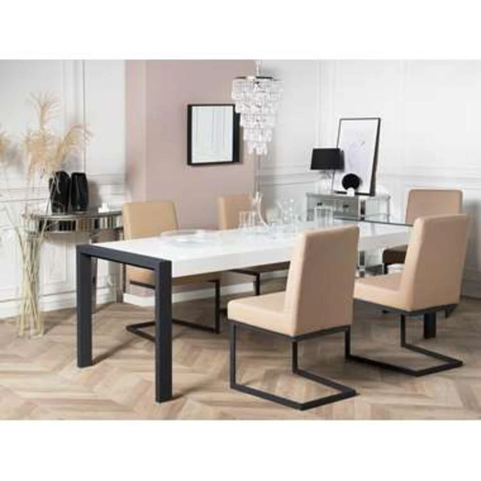 Luxe eettafel met wit blad en zwart onderstel. De strakke lijnen van deze eettafel zijn eenvoudig en elegant. De stabiele constructie en de hoogwaardige materialen zorgen voor een lange levensduur en stabiliteit. Het glanzende tafelblad is royaal en biedt comfortabel plaats aan zes personen. Verschillende moderne stoelen passen naadloos bij deze tafel om de look compleet te maken, de perfecte aanvulling op elke hedendaagse eethoek.