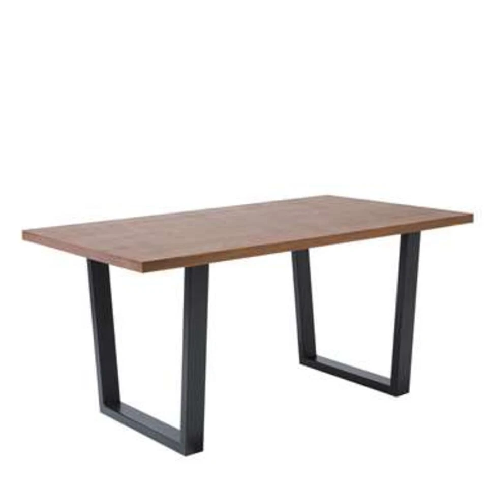 Industriële eetkamertafel met wengé houtfineer. Deze tafel is een opvallend meubelstuk voor elke eetkamer of keuken. Het minimale industriële ontwerp creëert een stoer, opvallend effect in elk modern interieur – van een klein appartement tot een loft. Het biedt comfortabele zitruimte voor 6 personen. Combineer het met een set stoelen in vergelijkbare trant en een lamp in industriële stijl voor een complete look.
