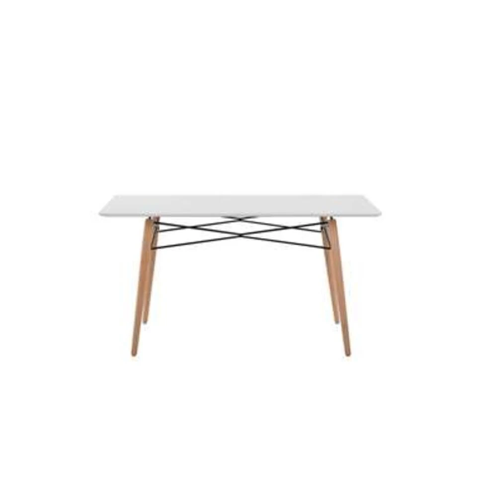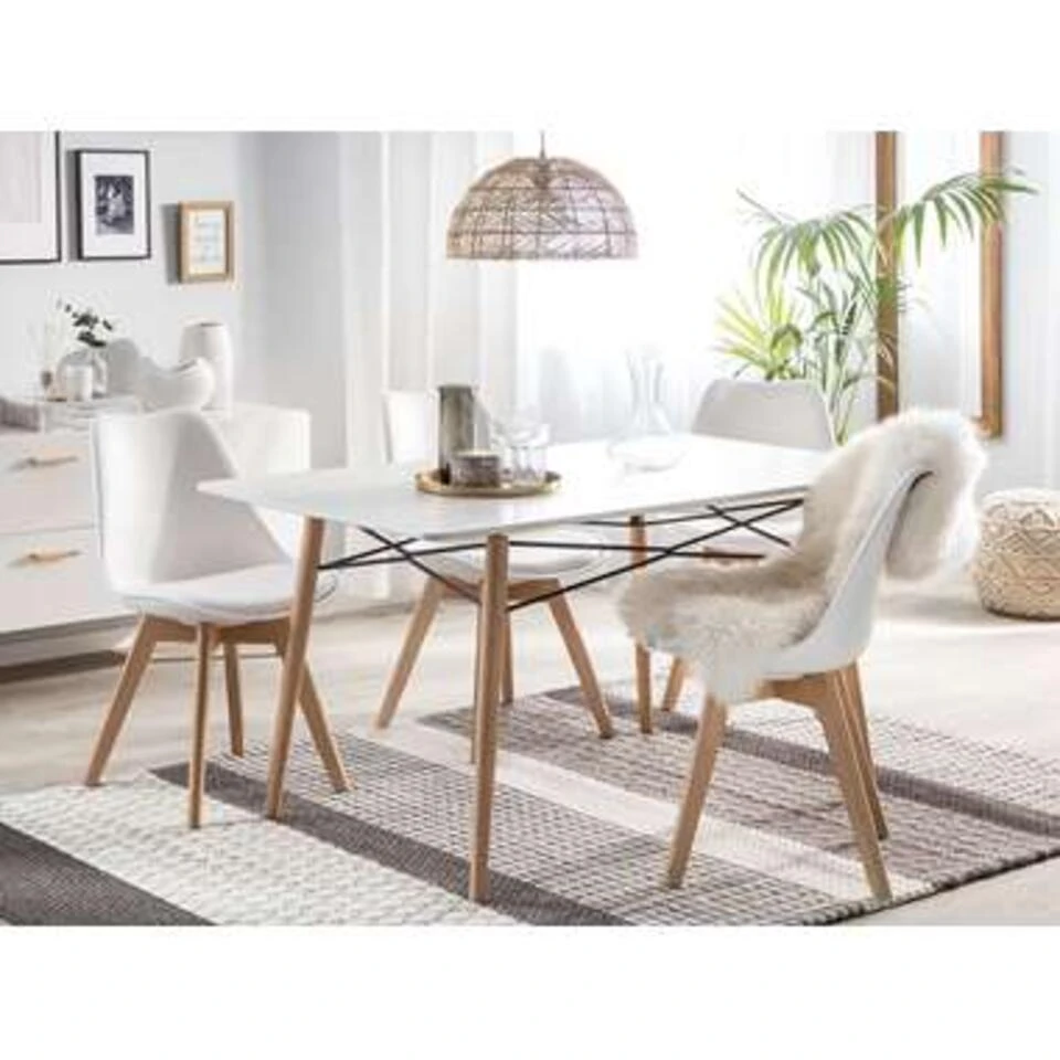 Stijlvolle, praktische eettafel met wit tafelblad. Deze eettafel is een praktische aanwinst voor je huis. Voeg een modern karakter toe aan je eetkamer en breng een elegante charme in je interieur. Het meubilair is een uitnodiging tot gezellige bijeenkomsten met familie of gasten.