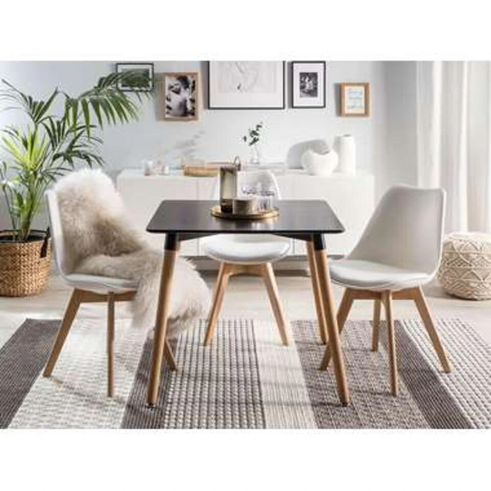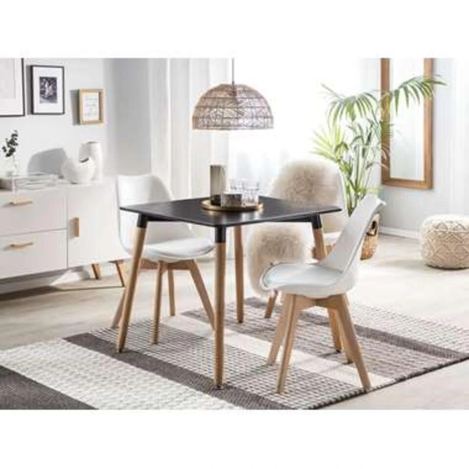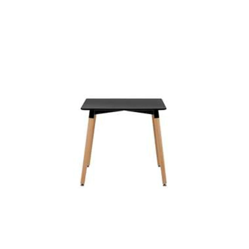 Smaakvolle vierkante eetkamertafel zwart BUSTO. Deze eettafel, geïnspireerd op Scandinavisch design, zal een vleugje luxe en elegantie toevoegen aan je interieur. Het heeft mooie slanke poten, die de tafel een stabiele basis geven voor dagelijks gebruik. Het stuk is zeer gemakkelijk te onderhouden, en heeft een matte afwerking voor een meer verfijnde look. Eenvoudig en modern ontwerp dat perfect samengaat met bijna elk interieur!