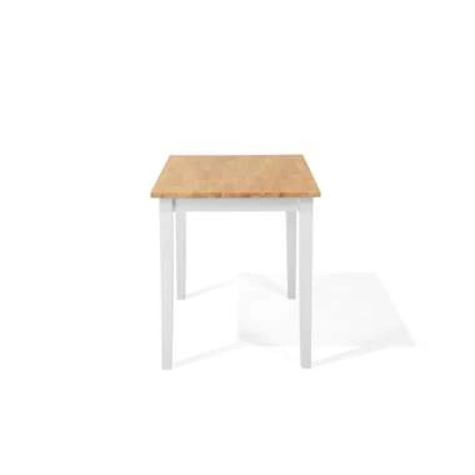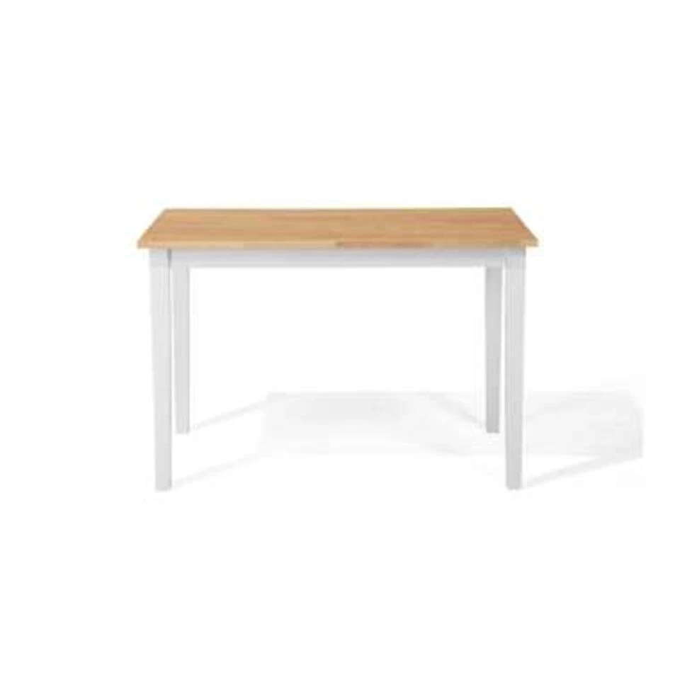 Moderne, landelijke eetkamertafel. Maak je eetkamer of keuken compleet met deze elegante eettafel. Het wordt vanzelf een middelpunt in de in richting en biedt voldoende ruimte om te eten, te werken of te spelen. De tweekleurige afwerking geeft een frisse en leuke uitstraling die goed in elk modern interieur past. De natuurlijke houtnerf en het knopenpatroon van het blad geven het een rustieke charme. Je zult nog lang van deze tafel kunnen genieten.