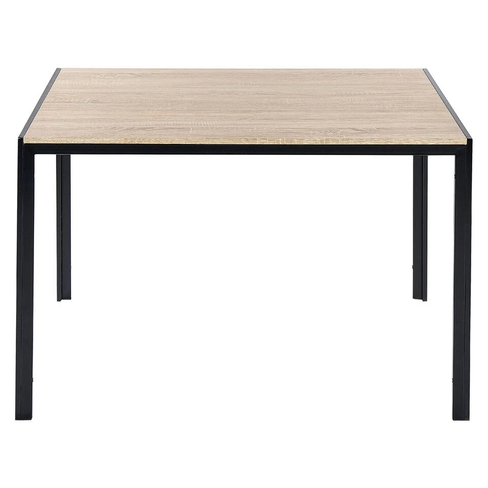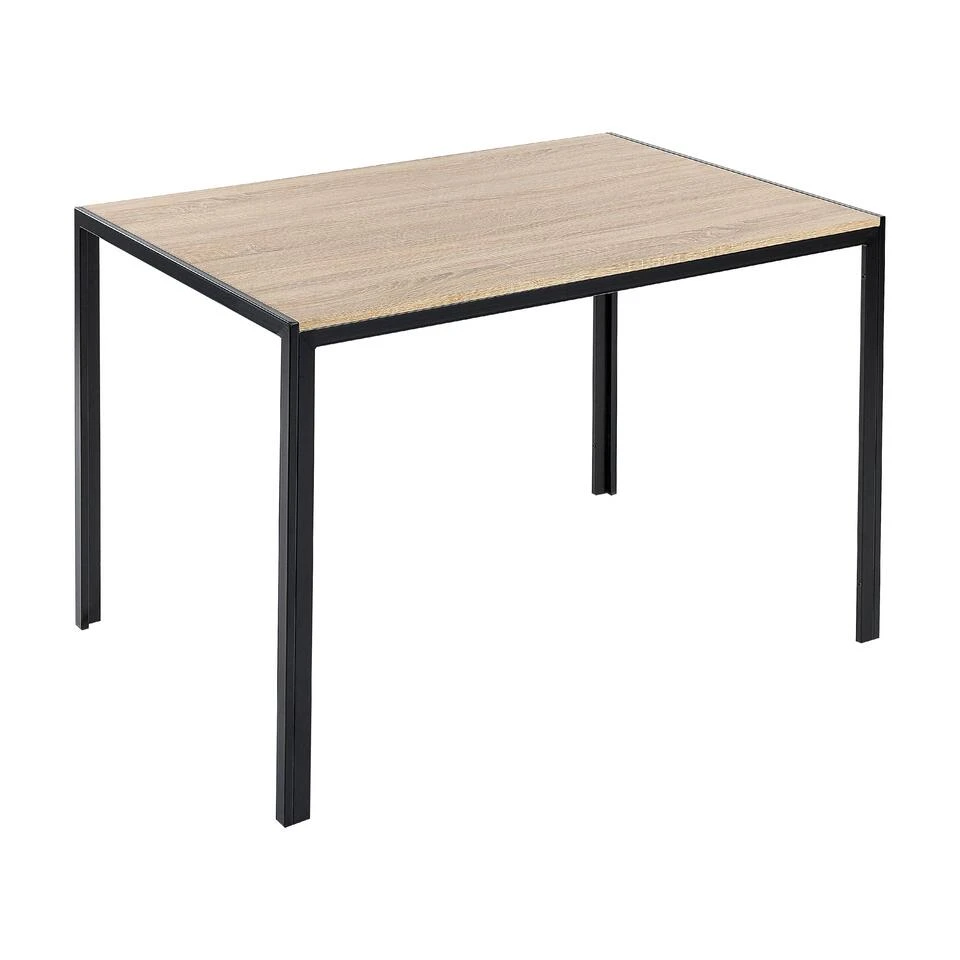 Eettafel met licht houteffect. Als je niet veel ruimte hebt in je eethoek, dan is deze tafel wellicht de oplossing. De tafel is ontworpen om plaats te bieden aan maximaal 4 personen en heeft een eenvoudige, klassieke stijl die past bij zowel moderne als traditionele interieurs. Het licht houten tafelblad in combinatie met het zwarte frame zorgt voor een lust voor het oog, stijlvolle combinatie. De tafel is perfect voor kleine familie- of vriendenbijeenkomsten.
