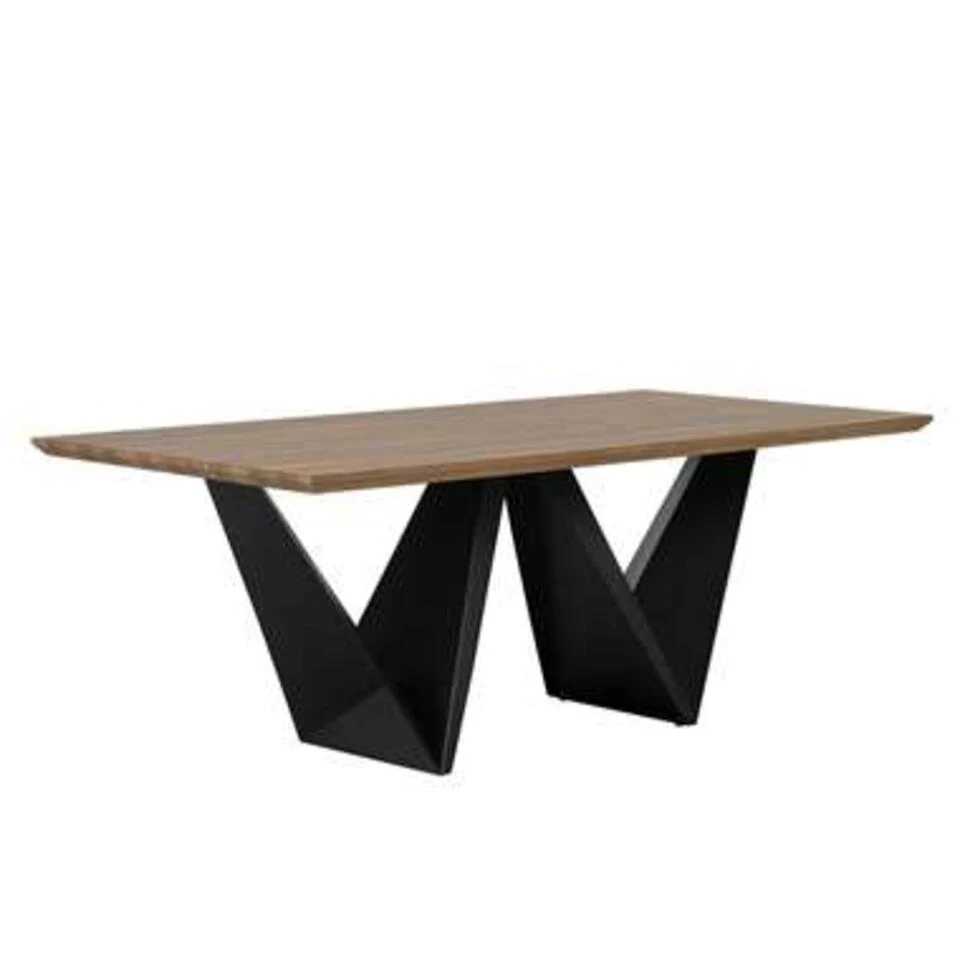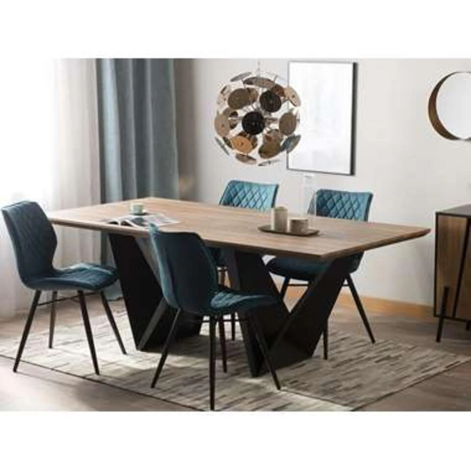 Industriële eetkamertafel met wengé houtfineer. Zorg voor een handige en moderne eetruimte met deze exclusieve tafel met industrieel design. De combinatie van verschillende elementen en het geometrische ontwerp zijn het perfecte pronkstuk voor je huis en geven de ruimte een urban en moderne stijl. De gehele structuur zorgt voor stabiliteit en dankzij de gekozen materialen zal de tafel vele jaren zijn uitstraling behouden.
