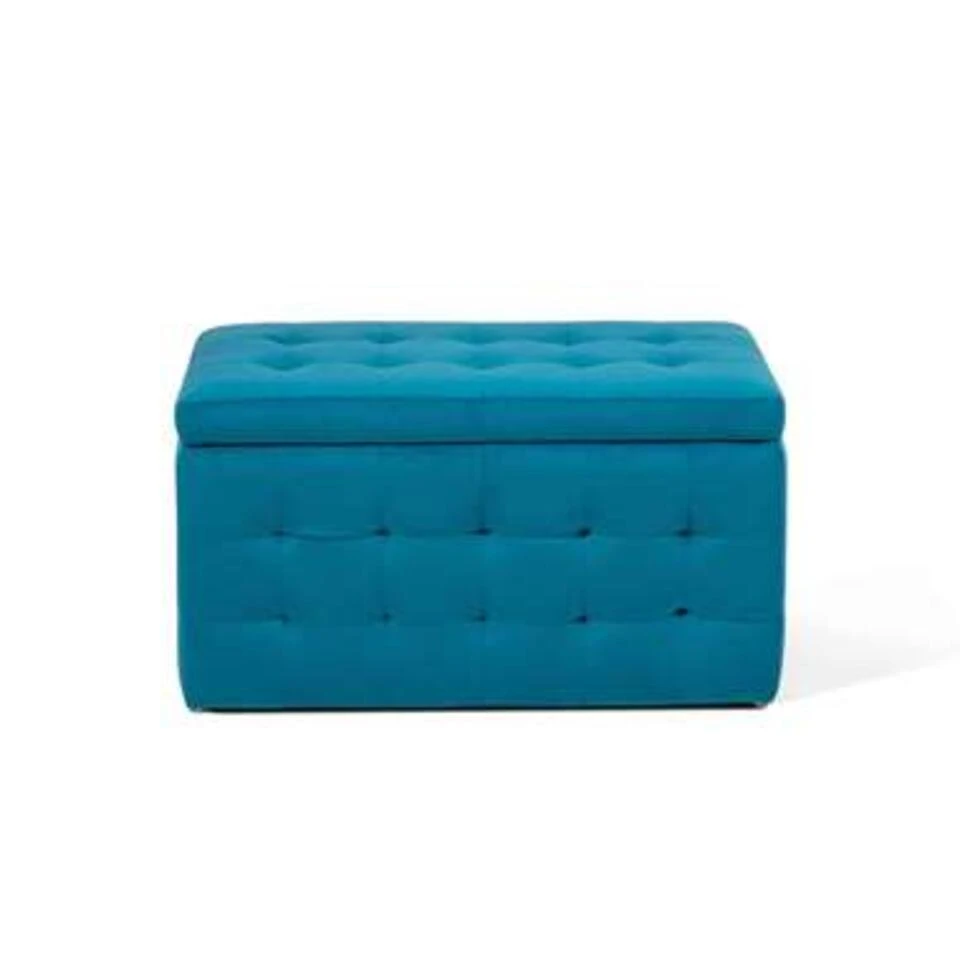 Marineblauwe hocker met veel opbergruimte. Deze hocker zal je overtuigen met zijn uitstraling en functionaliteit. Hij kan op vele manieren worden gebruikt: als poef, extra zitplaats, een voetenbank of accessoire waar je ook veel in kunt opbergen. De stevige constructie gemaakt van hout is bedekt met marineblauwe stof en daarom veelzijdig en zeer comfortabel tegelijkertijd.