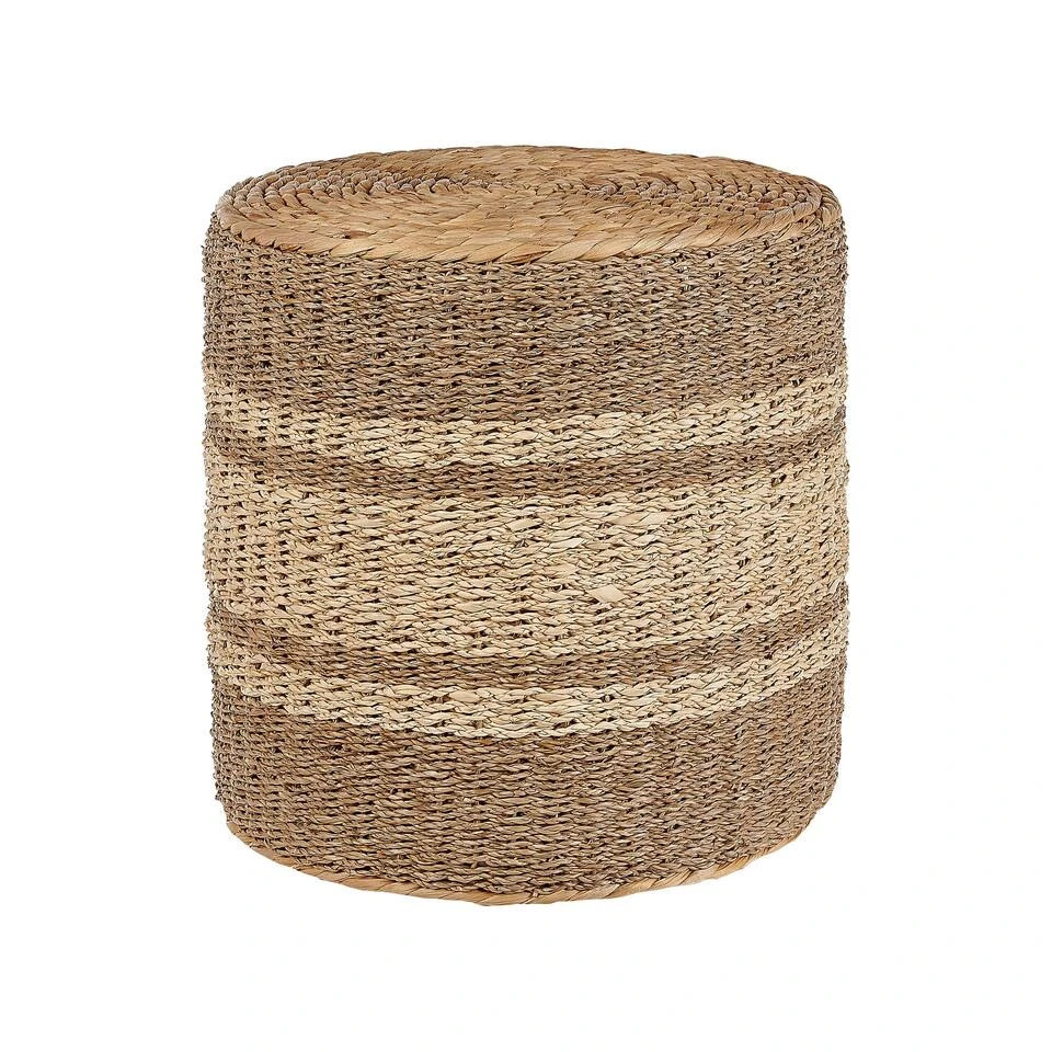 Beliani Poef BARBEL – Beige Waterhyacinth, Zeewier, Palmblad
