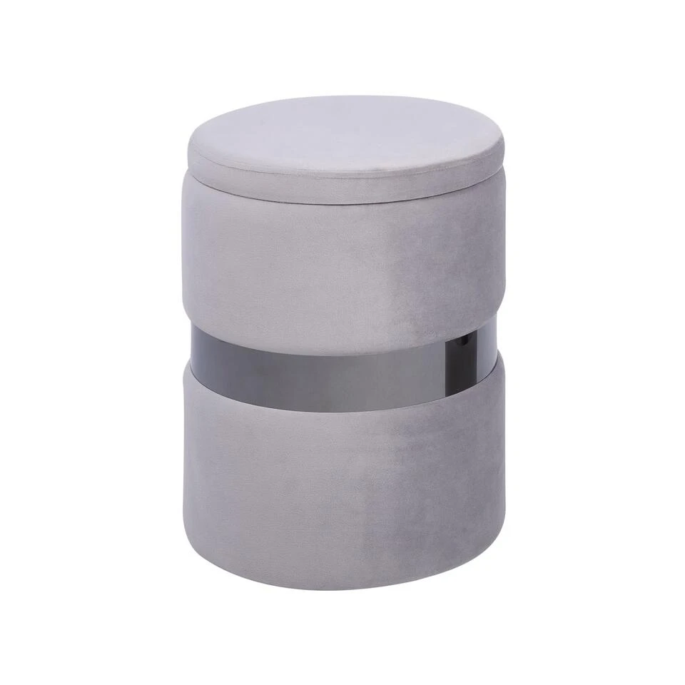 Grijze, fluwelen poef in een set van 2. Deze tweedelige set maakt een stijlvol statement zonder veel ruimte in te nemen. De meubels brengen een glamour sfeer in je interieur met hun prachtig ronde, met fluweel bedekte silhouet in een delicate grijze tint. De metalen band accentueert de glans van de bekleding en draagt bij aan het luxueuze ontwerp van de voetenbankjes. Door stijl en functionaliteit te combineren, is de set geweldig om op te zitten, je voeten op te leggen of rommel op te bergen in de diepe opslag. Dit accessoire ziet er fantastisch uit naast de bank of een bijzettafel.
