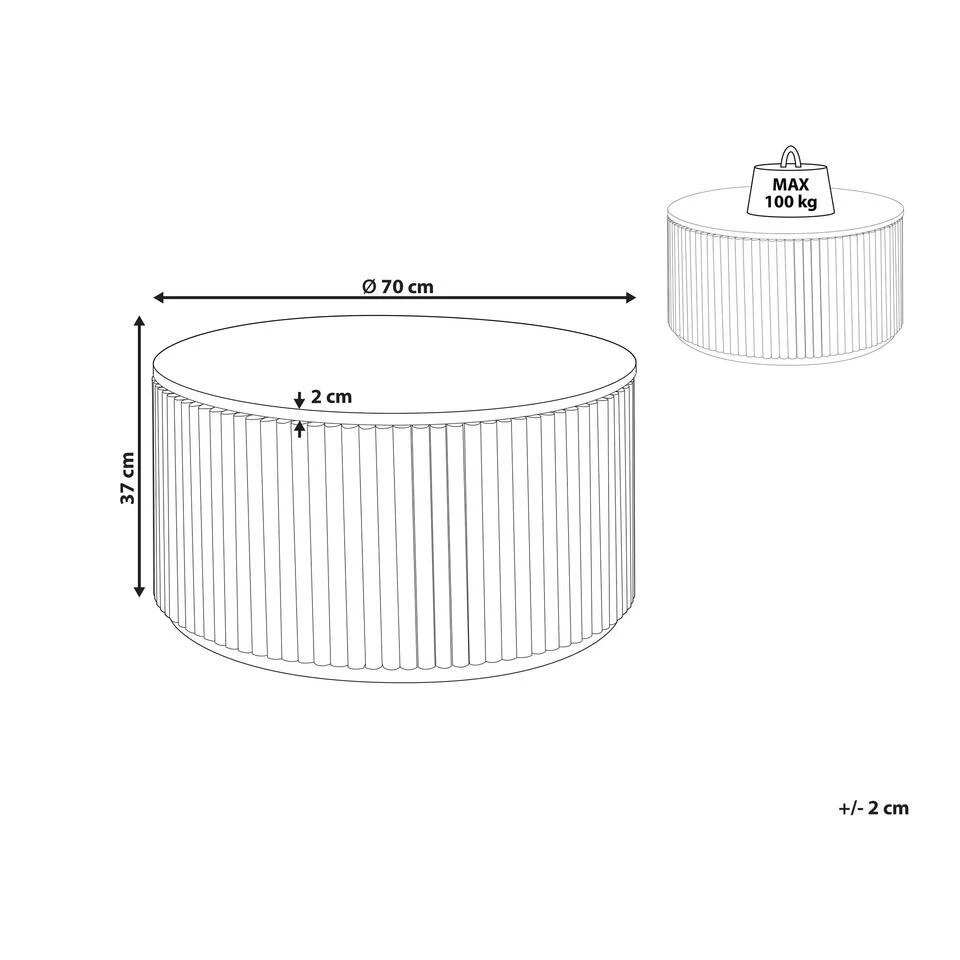 Ronde salontafel met opbergruimte. Organiseer de ruimte in je woonkamer en voeg er een stijlvol accent aan toe met deze salontafel. Het stuk zal op veel manieren nuttig zijn – je kunt er je drankjes of snacks op zetten, je favoriete geurkaarsen of bloemen laten zien, en wanneer het niet in gebruik is, kan het een opbergruimte zijn voor extra plaids, servies en accessoires. meer, dankzij een compartiment verborgen onder de afneembare bovenkant. De tafel is gemaakt van MDF en rubberhout, dus hij is zowel duurzaam als gemakkelijk schoon te maken.