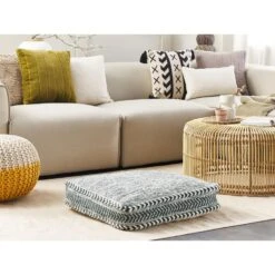 Beliani Poef BARBEL – Beige Waterhyacinth, Zeewier, Palmblad